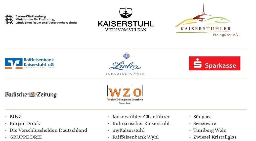 … an alle beteiligten Betriebe, Gastgeber, Winzer, Köche, Kulturinstitutionen, Gästeführer, Künstler und an die vielen helfenden Hände, die den KaiserHerbst möglich gemacht haben. … an unsere Sponsoren, deren Vertrauen und Unterstützung einen wichtigen Beitrag leisten, damit diese Veranstaltungsreihe wachsen und sich weiterentwickeln kann.