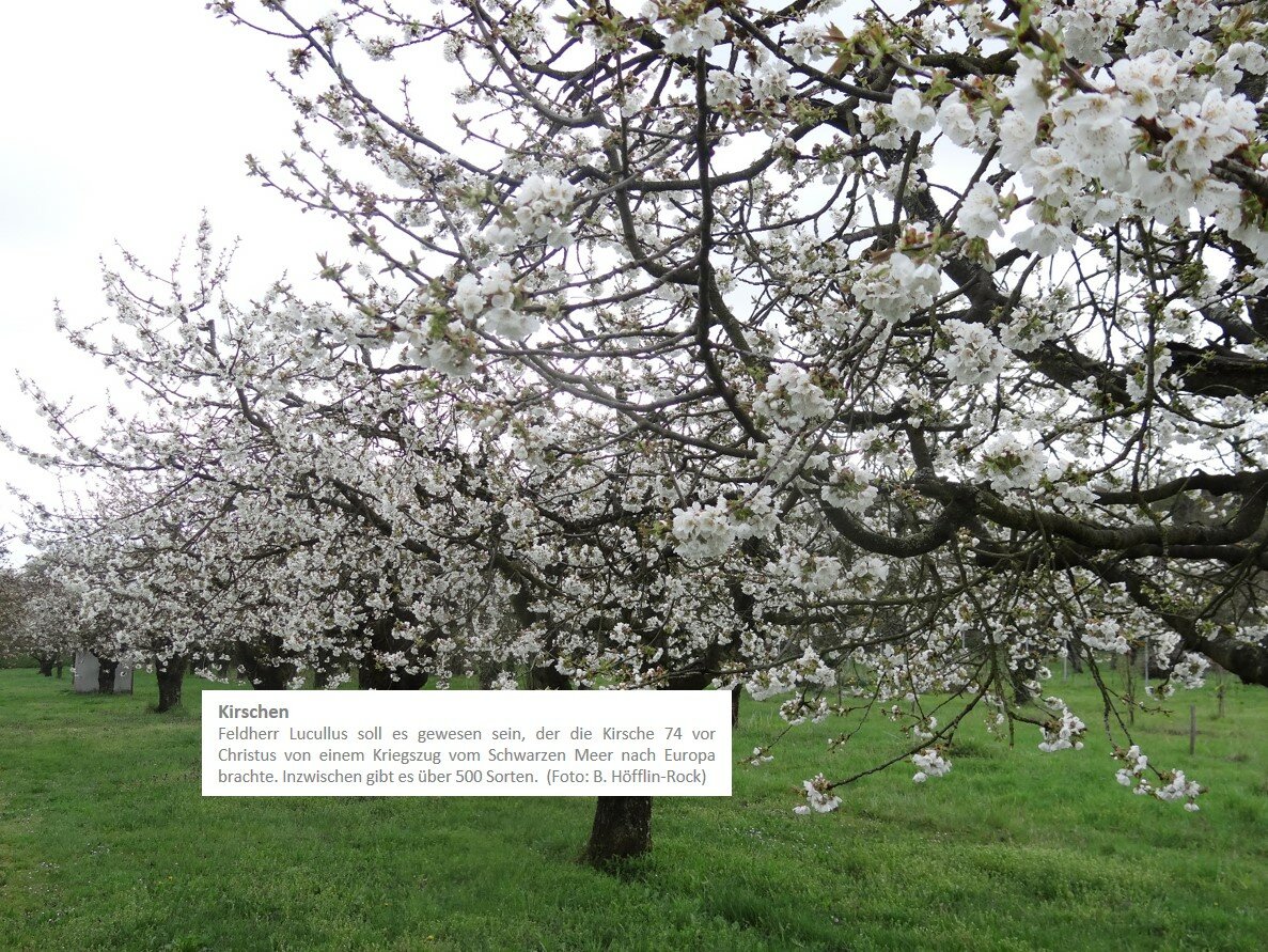 | Kirschbaumblüte | Zwischen Ende März und Mitte April | In den Tälern des Kaiserstuhls und rundherum, besonders am Nordrand rund um Königschaffhausen |