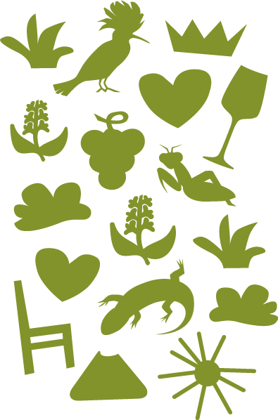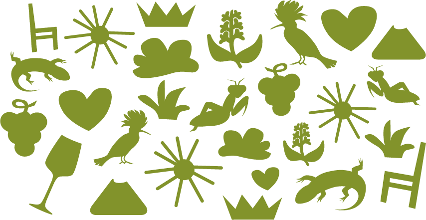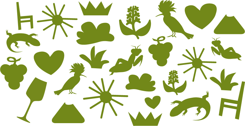 Die Icons sind die Merkmale des Naturgarten Kaiserstuhls. Sie werden in Kombination oder als Pattern abgebildet und wirken ohne Fotografie. Sie können auch im Hintergrund als Wasserzeichen genutzt werden.